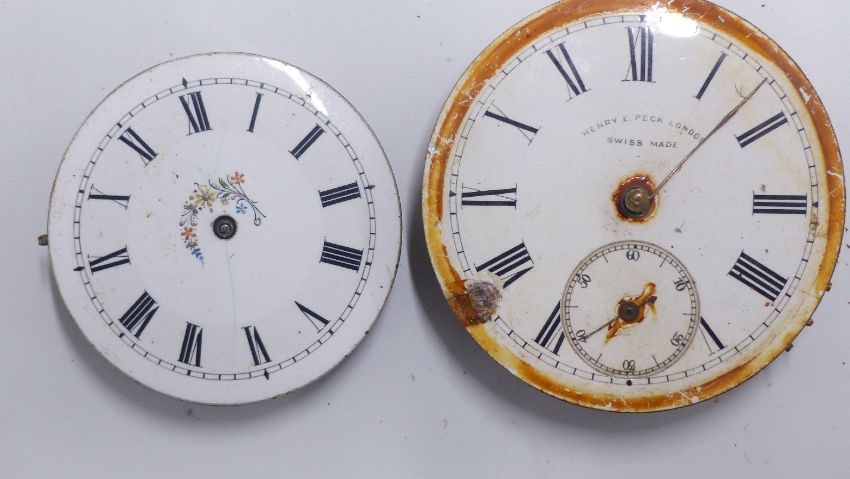 A collection of pocket watch movements and parts including Henry Peck, A. Goldstein of Rochester