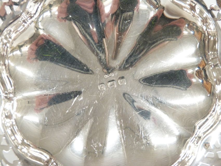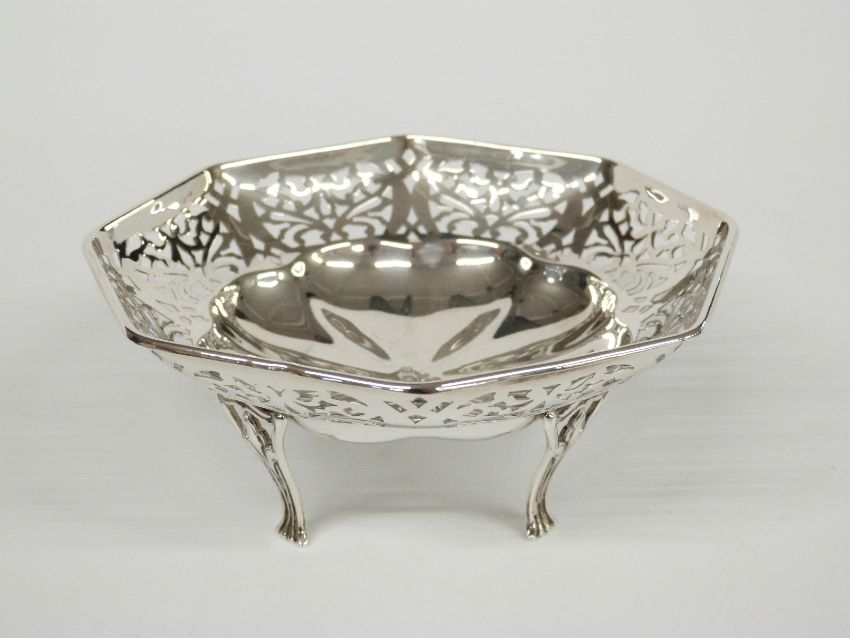 George VI hallmarked silver bonbon dish with pierced decoration, raised on four feet, Birmingham 1921 maker Henry Gifford Davis, width 14cm, weight 110g