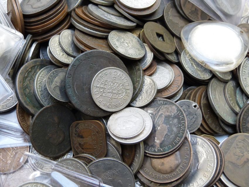 A collection of UK and overseas coinage, 19thC onwards, includes Lundy Puffin, Channel Islands, Irish Free State etc, silver content, banknotes etc