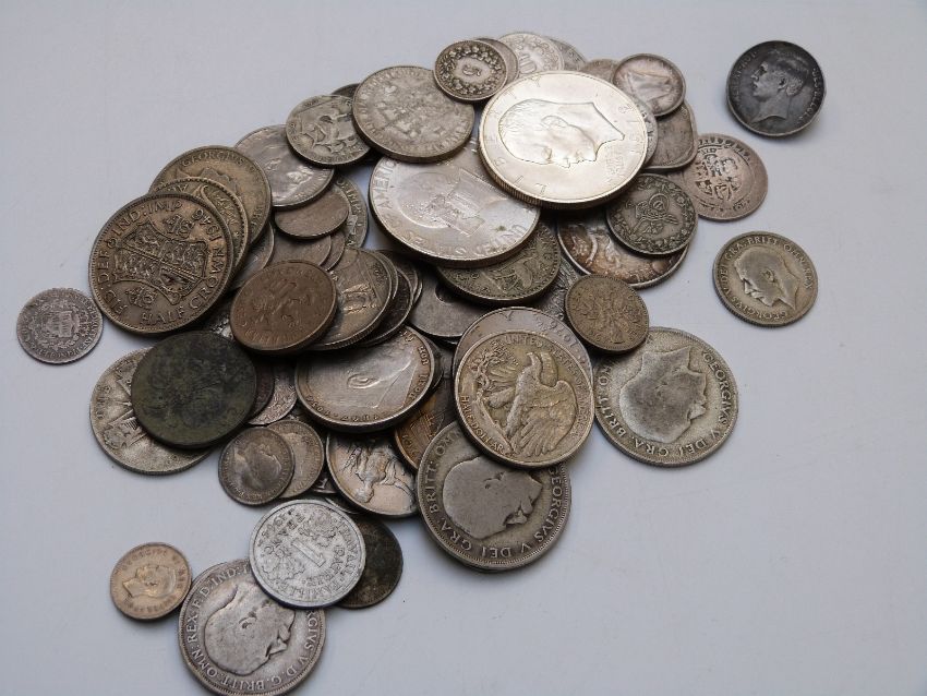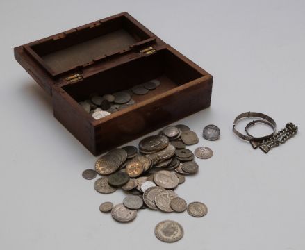An interesting collection of largely overseas coinage in wooden box, 19thC onwards, with high silver content, includes Ireland, USA, Australia etc