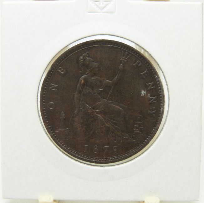 1879 Victorian later young bust bronze penny, OT TB, near unc