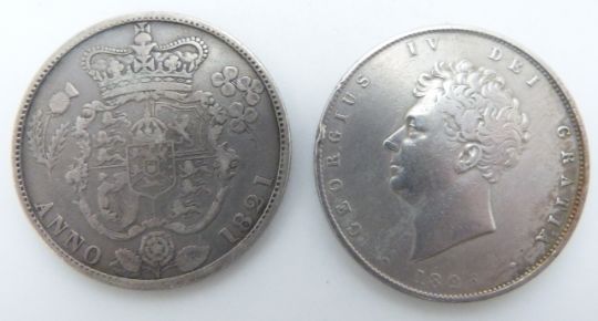 1821 George IV half crown, first head, first reverse, VF, together with an 1826 second head third reverse example, VF