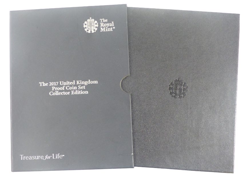 Royal Mint 2017 proof coin set Collectors' Edition comprising thirteen coins including two five pound and two two pound coins, in original case with certificate