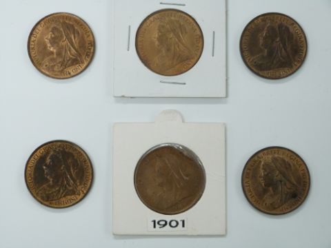 1896-1901 run of veiled head Victorian pennies, all near unc with almost full lustre, 6 coins