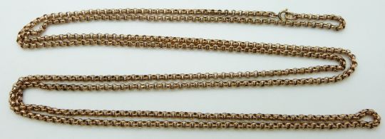 Victorian 9ct rose gold guard chain made up of faceted links, 24.8g, 70cm long