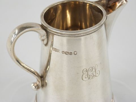 George V hallmarked silver jug of tapering form, Sheffield 1935 maker James Dixon & Sons Ltd, height 8cm, 142g