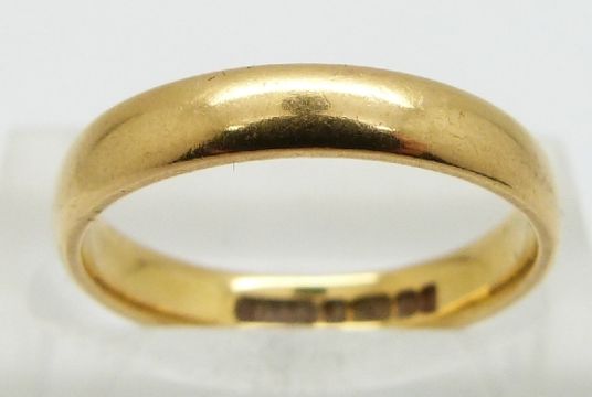 A 22ct gold wedding ring, size L/M, 3.9g