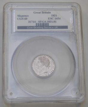 1821 CGS slabbed 'bull head' sixpence CGS 60, first bust, first reverse