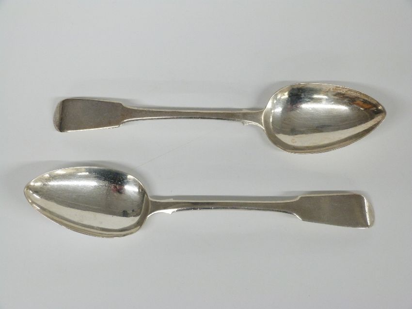 A pair of Georgian hallmarked silver fiddle pattern tablespoons, London 1819, 117g