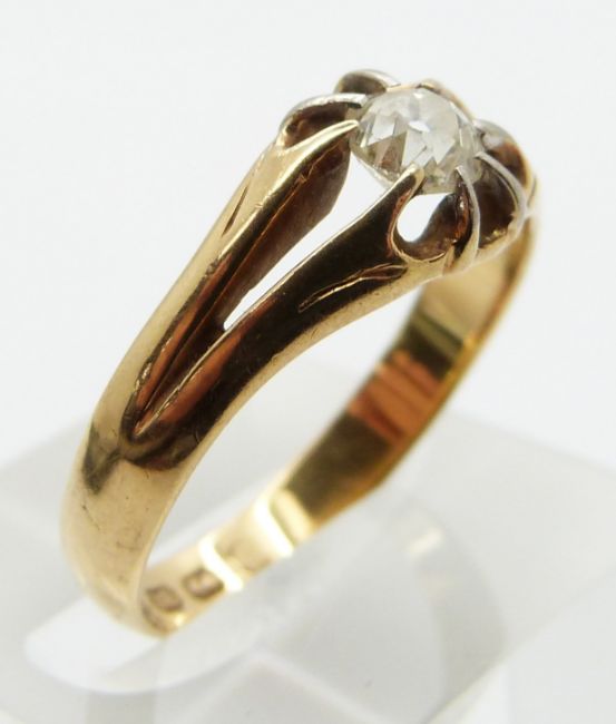 An 18ct gold ring set with an old cut diamond of approximately 0.5ct diamond, size U