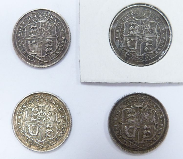 Four George III "bull head" sixpences, 1816, 1817, 1818 and 1820, all NVF or better