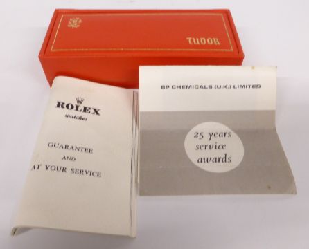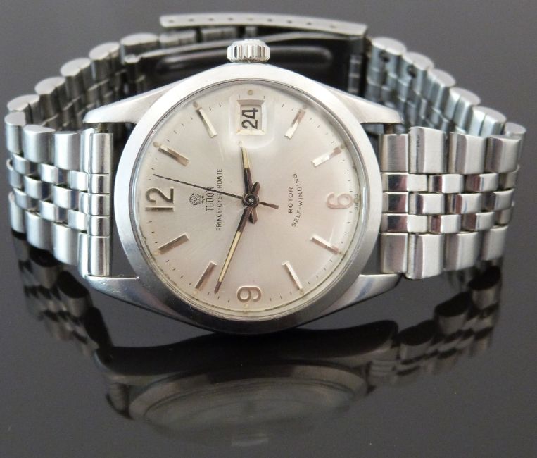 Tudor Prince Oysterdate gentleman's automatic wristwatch ref. 7966 with date aperture, luminous steel hands, steel baton markers and Arabic numerals, silver dial, stainless steel case marked to the back 'Original Oyster Case by Rolex Geneva' and 25 jewel ETA calibre 2484 movement, on stainless steel bracelet, case diameter 34mm, serial number 578300, in original box with outer box and paperwork.