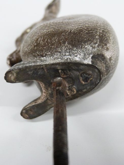 Modern hallmarked silver novelty rabbit on square tapering wooden base, London 1981 maker's mark indistinct, height of rabbit 8cm, weight excluding base 112g