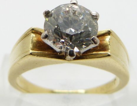 An 18ct gold ring set with a diamond of approximately 1.66ct, the diamond purchased in South Africa, size O