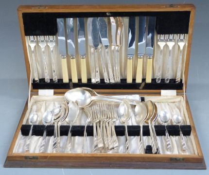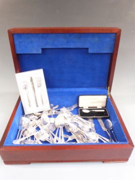 Three canteens of silver plated cutlery, some loose