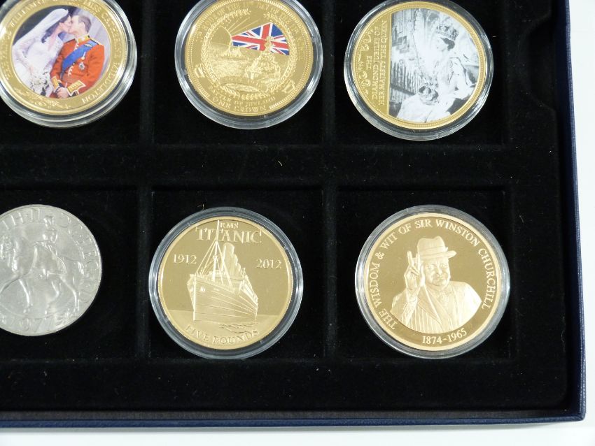 Twelve various modern commemorative crowns, includes gold plated Titanic five pounds etc