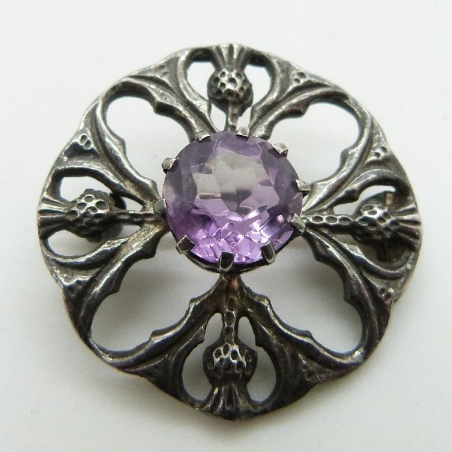 Scottish silver brooch set with purple paste, Edinburgh 1964, 3 x 3cm