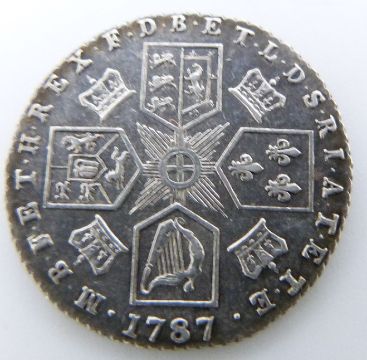 1787 George III sixpence, no semee of hearts reverse, EF with edge toning