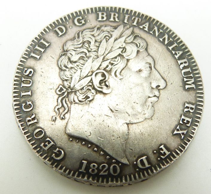 1820 George III crown, LX edge, VF
