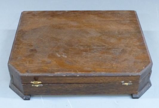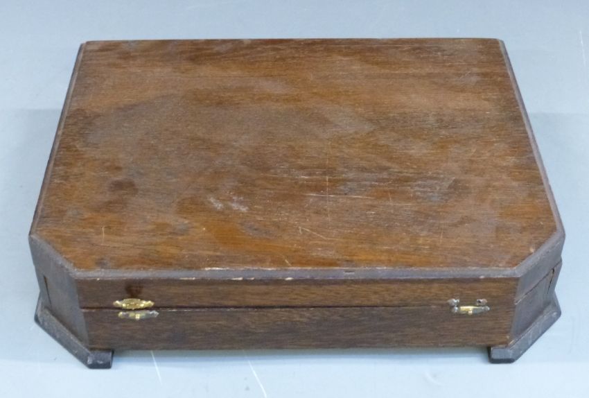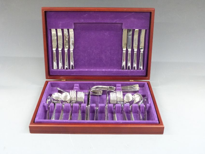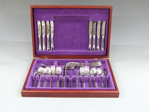 Four stainless steel canteens of cutlery including an Art Deco style set with green handles