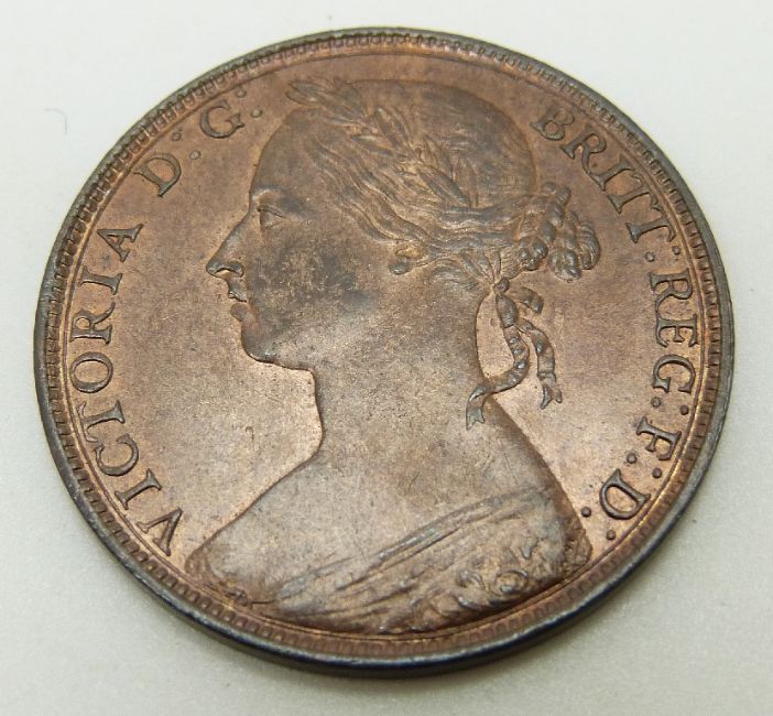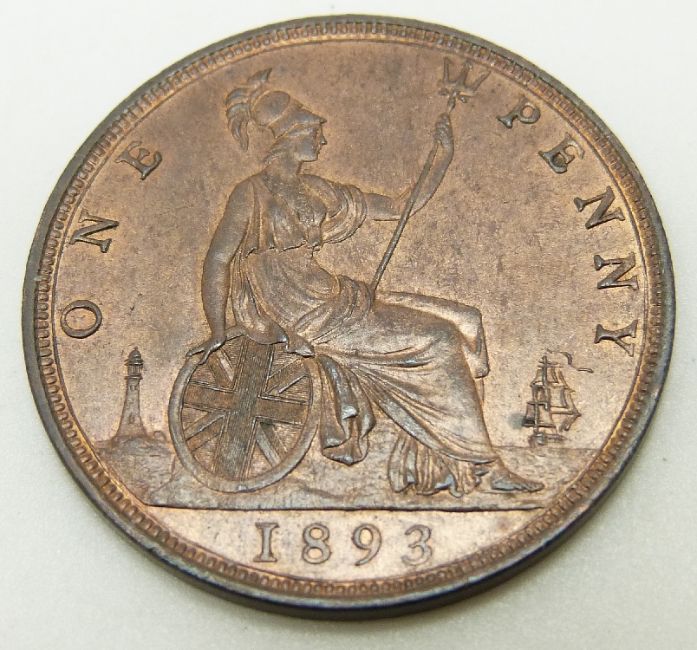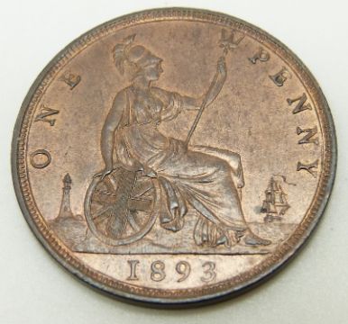 1893 later young head Victorian bronze penny, unc with lustre