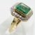 An 18ct gold ring set with an emerald cut emerald approximately 3.3ct surround by diamonds, size N