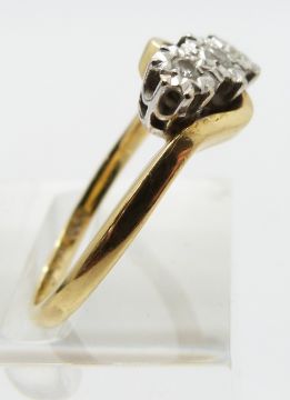 An 18ct gold ring set with three diamonds in a platinum illusion setting, size Q
