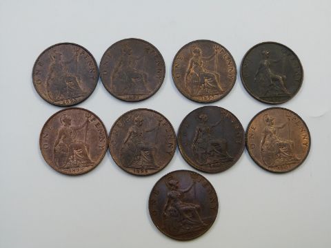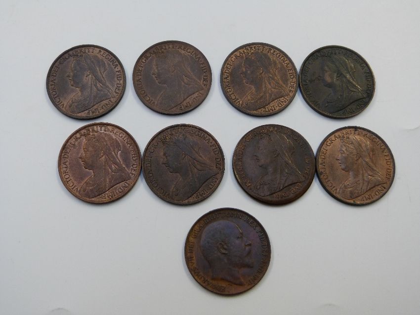 Eight various veiled head Victorian bronze pennies, various high grades VF - EF, together with a 1909 Edwardian VF example