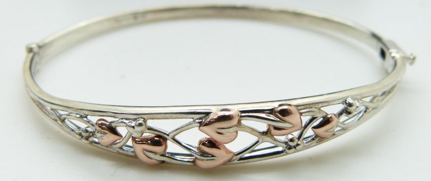 Clogau silver bangle with Welsh gold detail, in original box