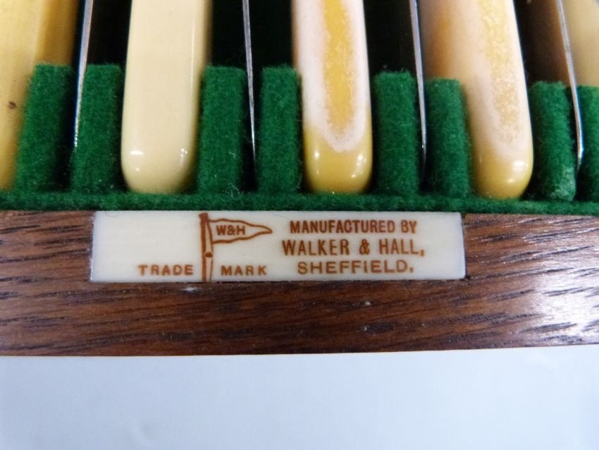 Walker & Hall oak cased silver six place setting canteen of cutlery