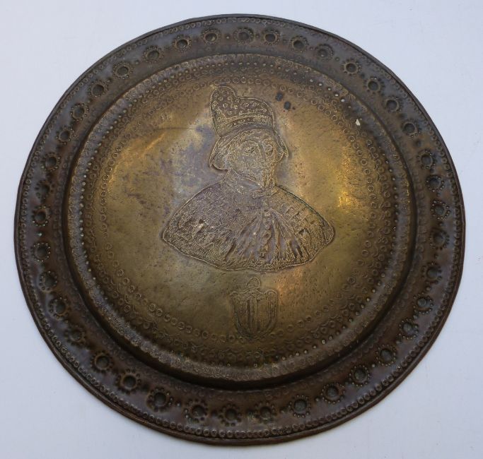 An 18th / 19th C  circular brass plaque with relief decoration of the doge of Venice, diameter 24cm
