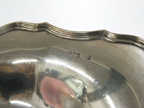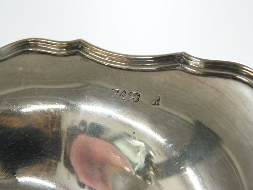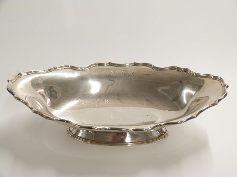 Hallmarked silver pedestal shaped oval bowl, Chester 1918 maker Barker Brothers, height 7cm, length 30cm, 355g