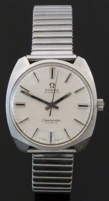 Omega Seamaster Cosmic gentleman's automatic wristwatch ref. 165.022 SP with two-tone steel hands and baton markers, silver face, stainless steel case and signed 24 jewel calibre 552 movement, on expanding metal bracelet, case diameter 33.5mm.