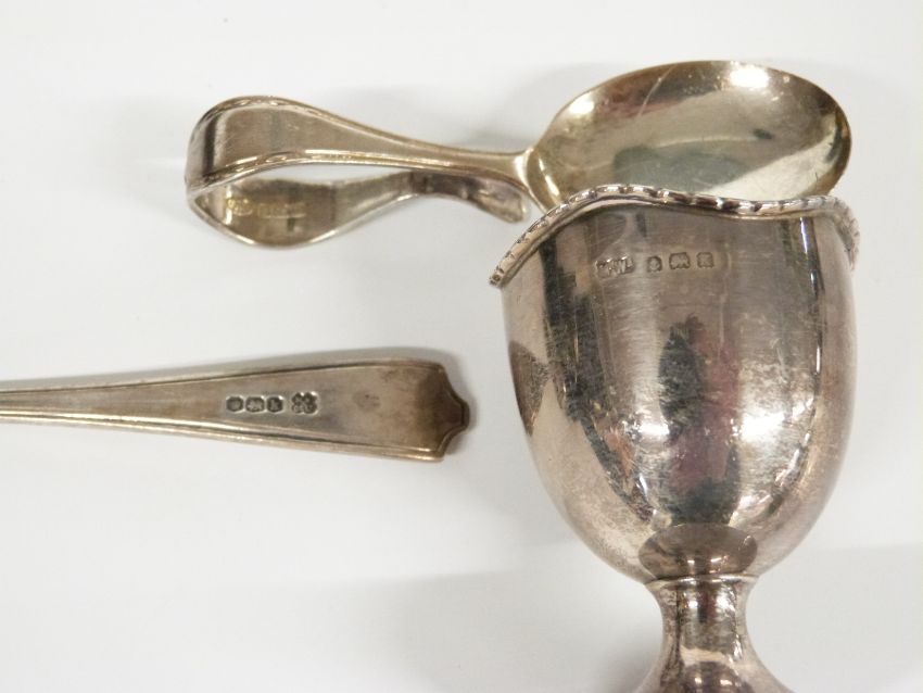 Mappin & Webb cased hallmarked silver christening set comprising egg cup, napkin ring and spoon, cased hallmarked silver pap spoon and further silver spoon, weight of silver 136g