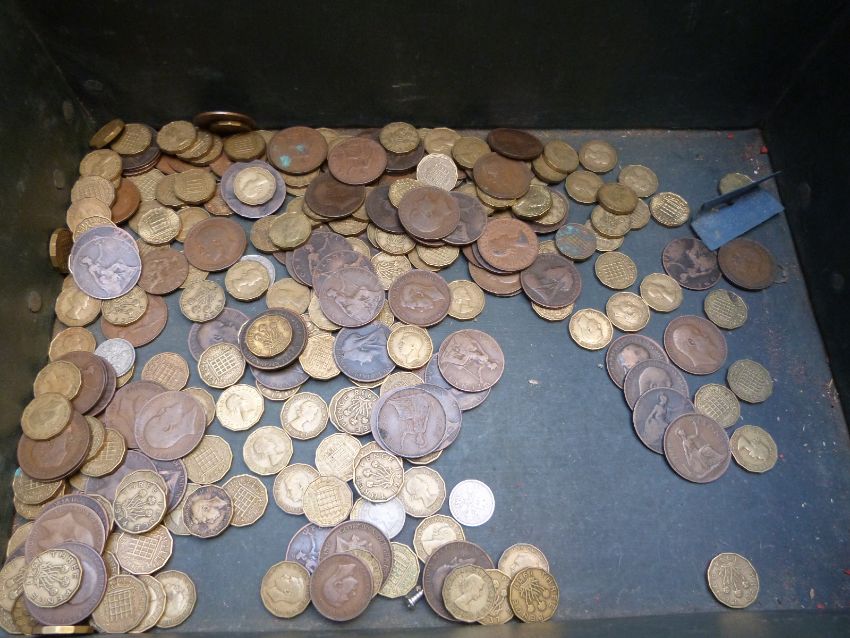 Thomas Milnes & Co deed box and a quantity of UK coinage, Victoria onwards