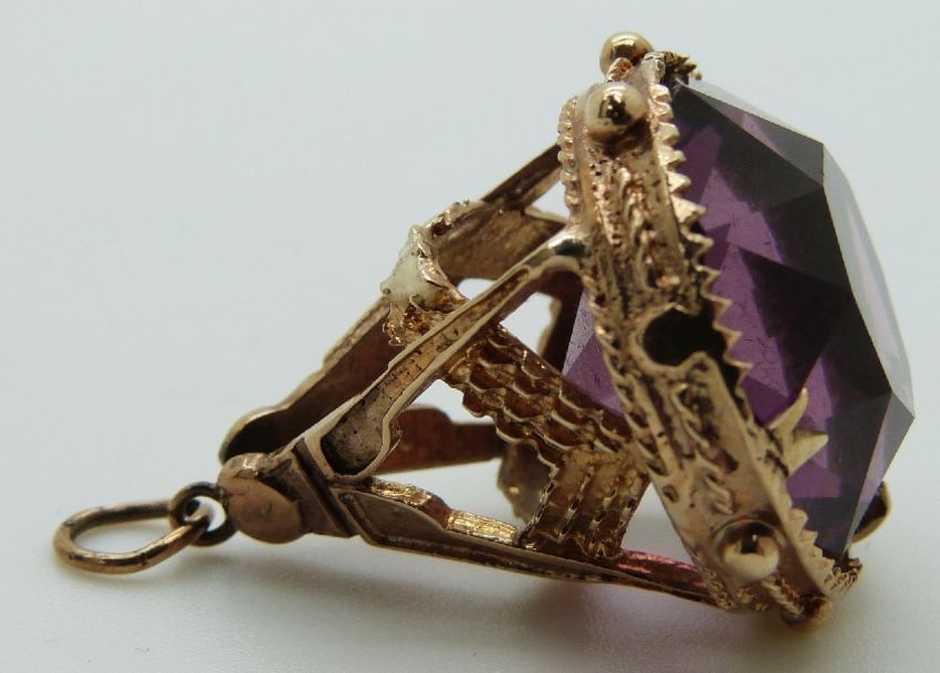 A 9ct gold Masonic fob set with purple paste