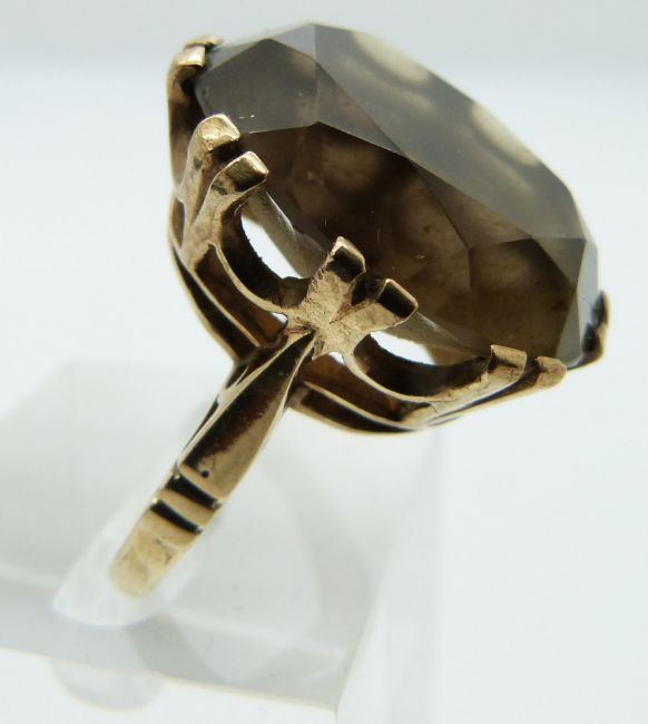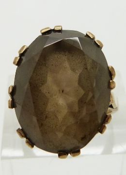 A 9ct gold ring set with a smoky quartz