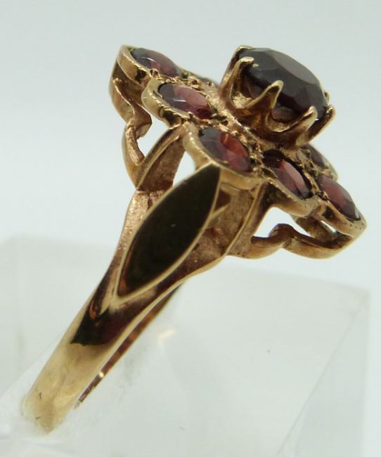 A 9ct gold ring set with garnets, size K