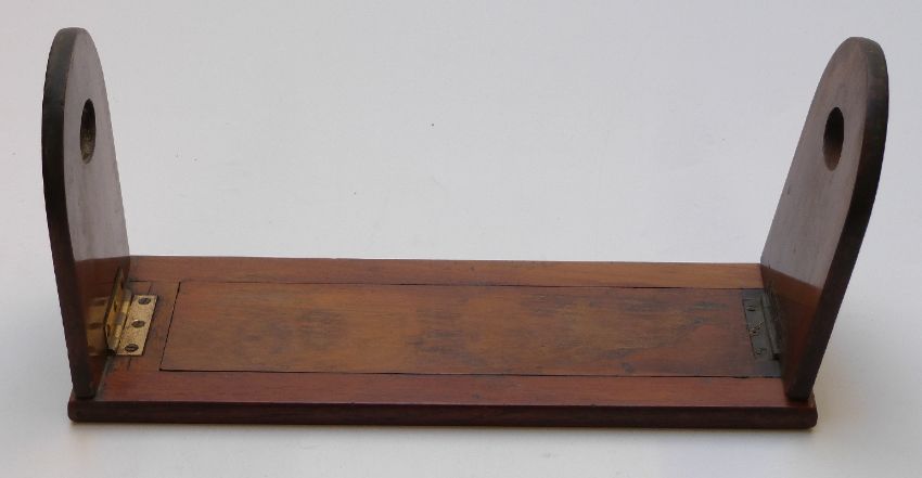 19thC adjustable mahogany book slide with label for Miller, 4 Wine Street, Bristol, 34cm x 55cm extended.