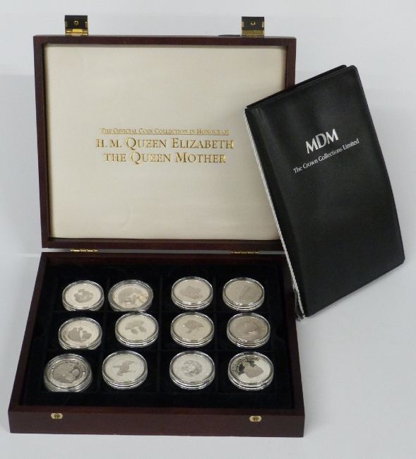 MDM HM Queen Elizabeth the Queen Mother silver proof coin collection in deluxe case with certificate booklet, comprising 24 mainly crown sized coins