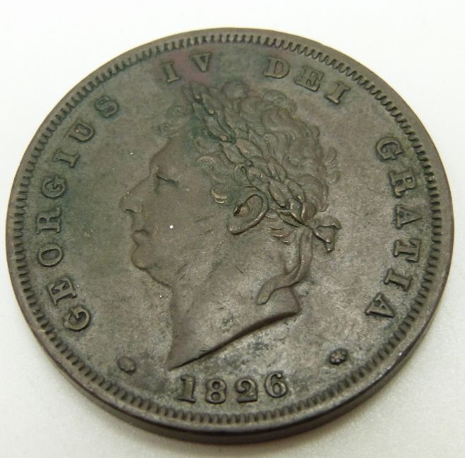 1826 George IV copper penny thin line on saltire reverse, Spink 3823, VF-EF