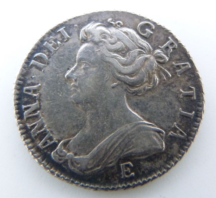 Queen Anne 1707 sixpence, E below bust (Edinburgh), plain angles reverse, VF