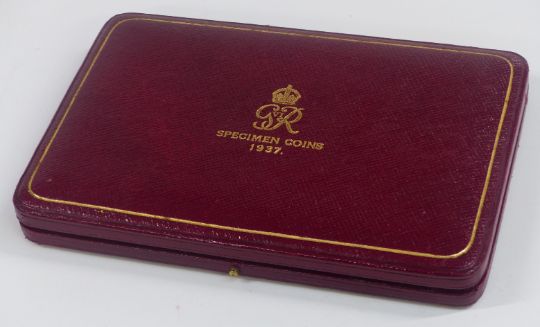 George VI 1937 specimen coin set comprising 14 coins from crown to Maundy penny, in original case, missing two shilling piece