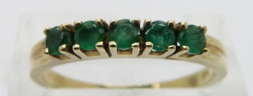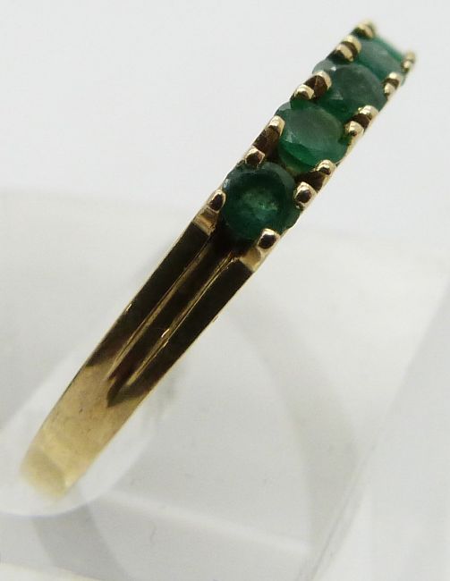 A 14ct gold ring set with emeralds, size P