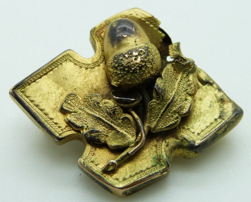 Victorian yellow metal brooch in the form of an acorn, 5.8g