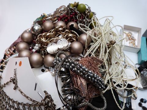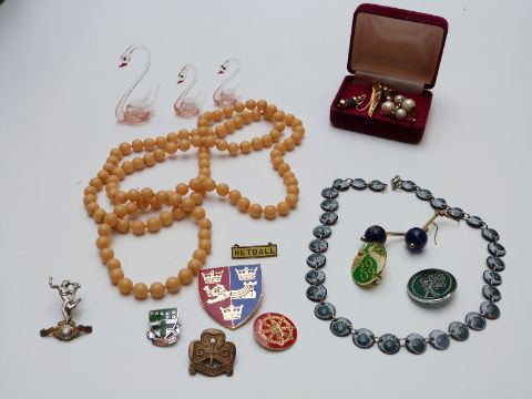 A collection of costume jewellery including brooches, beads, pearl earrings  etc