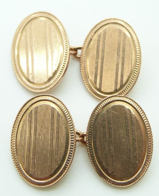 A 9ct rose gold engine turned cufflinks, Chester 1911, 10.5g