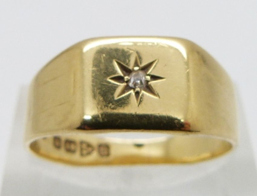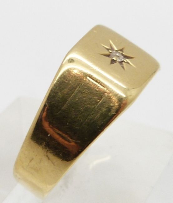 An 18ct gold ring set with a diamond, Chester 1928, 5.1g, size R