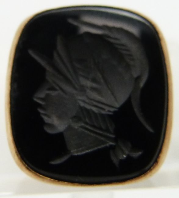 A 9ct gold fob set with an intaglio onyx seal and a Victorian fob set with agate carved with musical notes and reading All's Well