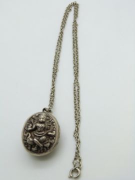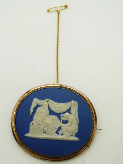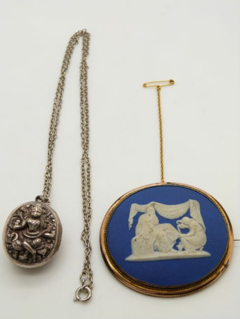 An Indian white metal locket and a Jasperware brooch possibly Wedgwood